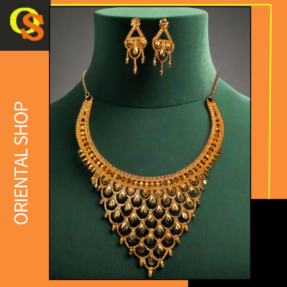 พร้อมส่งชุดต่างหูสร้อยคอชุบทอง22K ชุดเครื่องประดับชุดสร้อยคอต่างหู