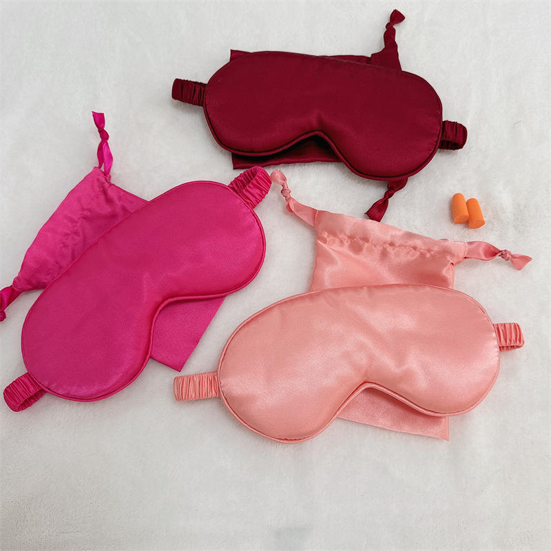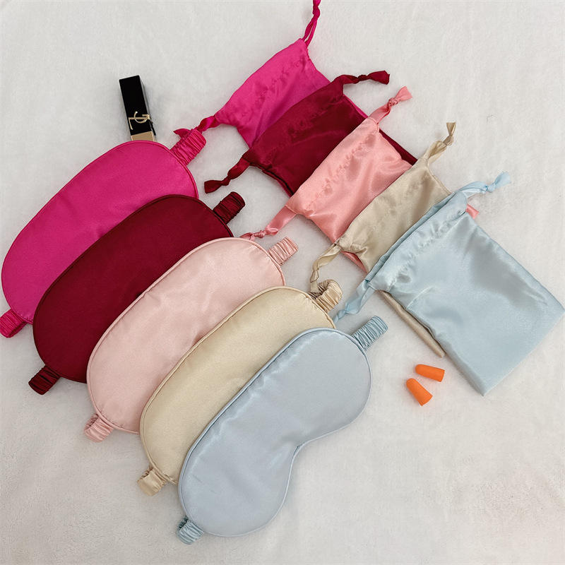 ชุดดูแลส่วนบุคคลพร้อมส่งกระเป๋าเก็บหน้ากากปิดตาผ้าไหมเทียมชุด2ชิ้นสำหรับการเดินทางกลางคืนอุปกรณ์เพื่อสุขภาพตา