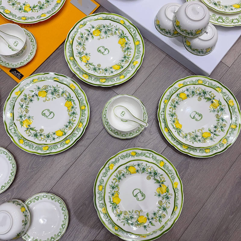 พร้อมจัดส่ง ชุดจานเซรามิคลายเลมอนคลาสสิก สำหรับใช้ส่วนตัว