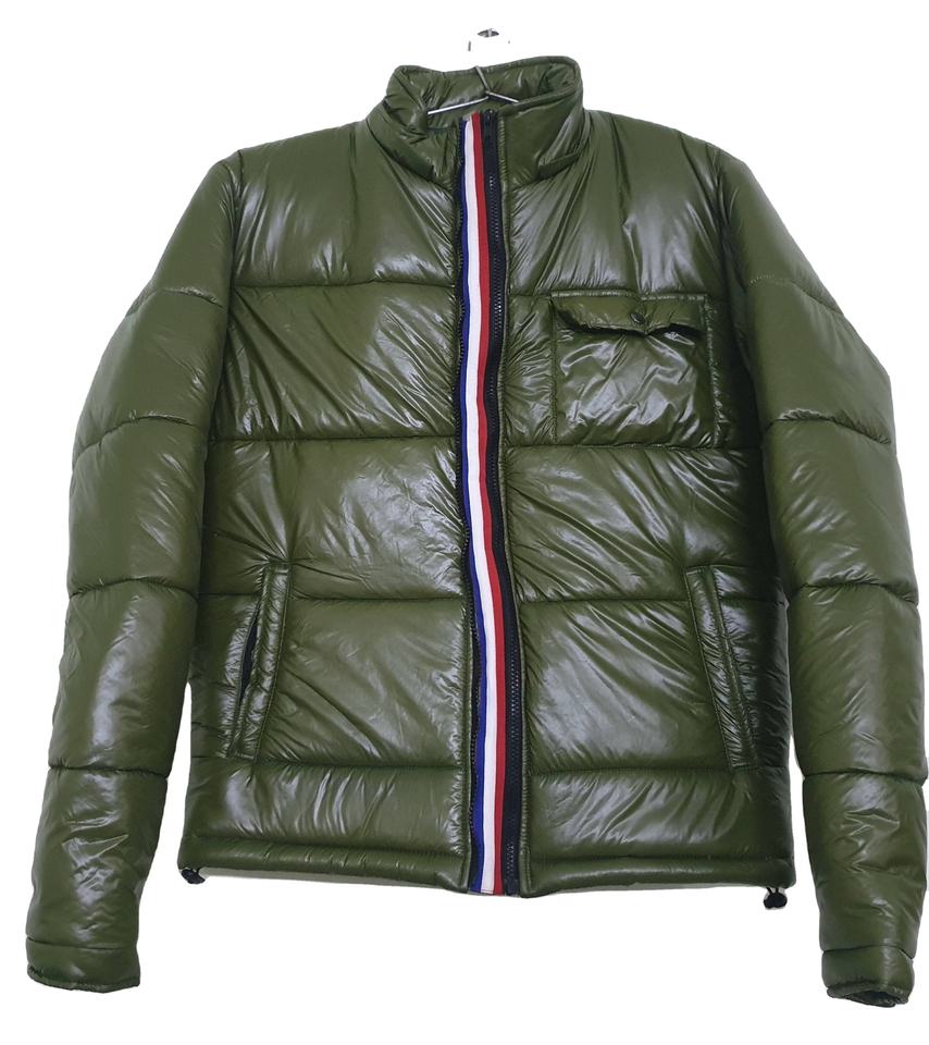 แจ็กเก็ตขนเป็ดแวววาวสำหรับผู้ชายเสื้อแจ็กเก็ตผ้าใบกันหนาวบุโพลีเอสเตอร์สีเขียวมะกอกถอดออกได้สไตล์สตรีทแวร์