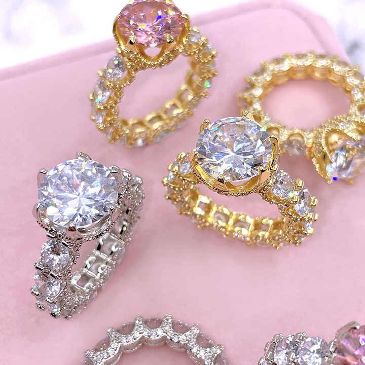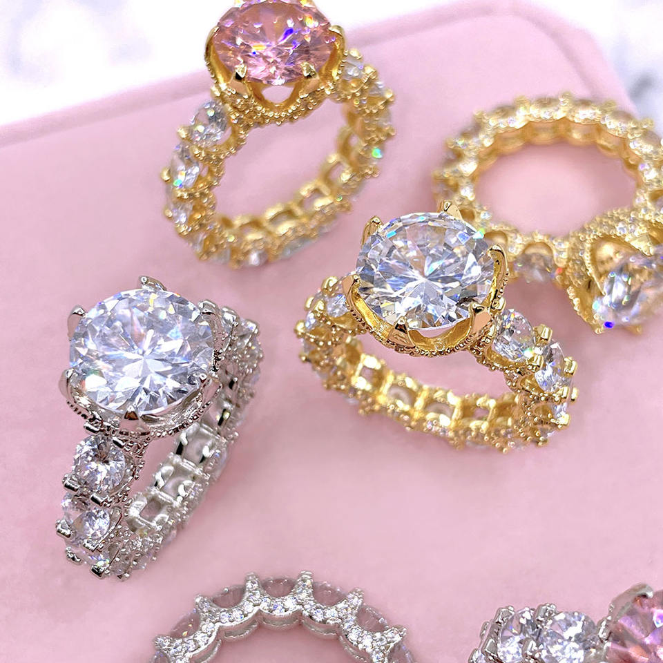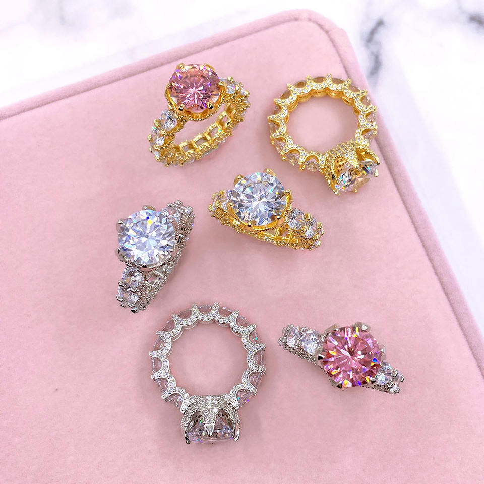 แหวนแต่งงานหรูหราสำหรับผู้หญิง แหวนนิ้วแต่งงาน แหวนเพชร CZ ทรงกลมขนาดใหญ่ งานแฮนด์เมด พร้อมส่ง