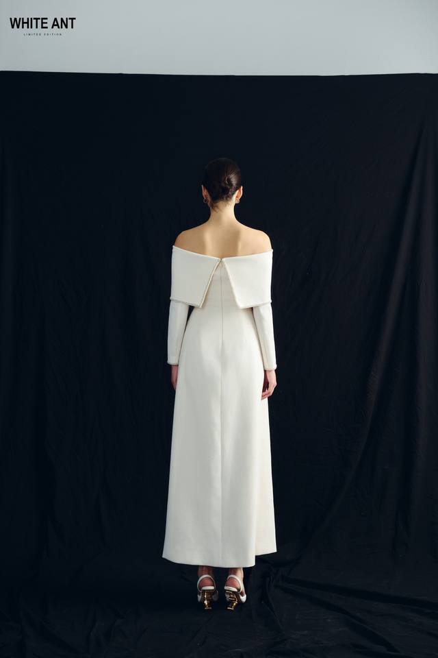 ชุดเดรสแฟชั่นแขนยาวสำหรับผู้หญิงชุดเดรสผ้า2024ใยสังเคราะห์ผ้าสแปนเด็กซ์สีขาวสำหรับเวียดนาม