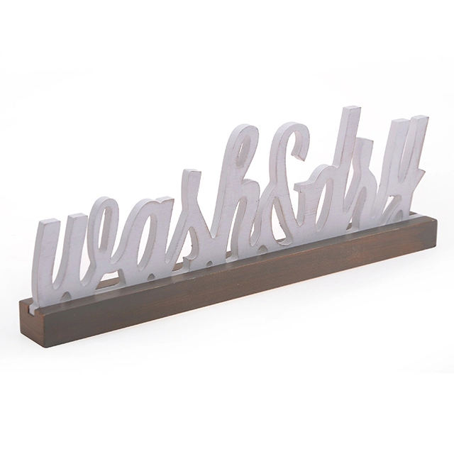 Ready Ship OEM Brand MDF Word Handmade Wash White Customizable Logo Table Sign 5.25x15x1.5" Thick Desktop Gift Home Decor