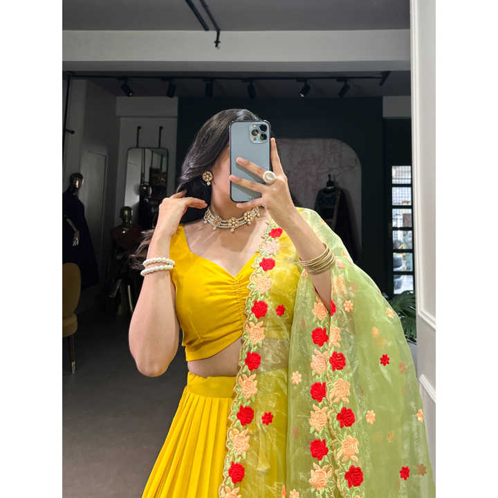 Lehenga choli อินเดียแต่งงานกับ dupatta สำหรับผู้หญิงวัสดุจอร์เจียสไตล์ดั้งเดิมสำหรับงานปาร์ตี้และฤดูกาล