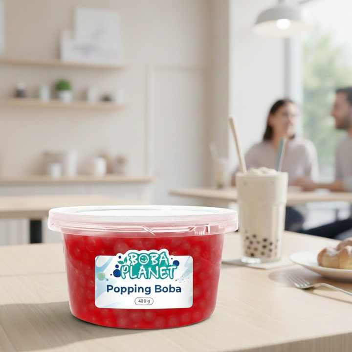 บัวลอยรสสตรอว์เบอร์รีขนาด 5 มม. พร้อมรับประทาน บรรจุในขวดสำหรับร้านอาหาร BobaPlanet 490 กรัม 18 ถ้วย
