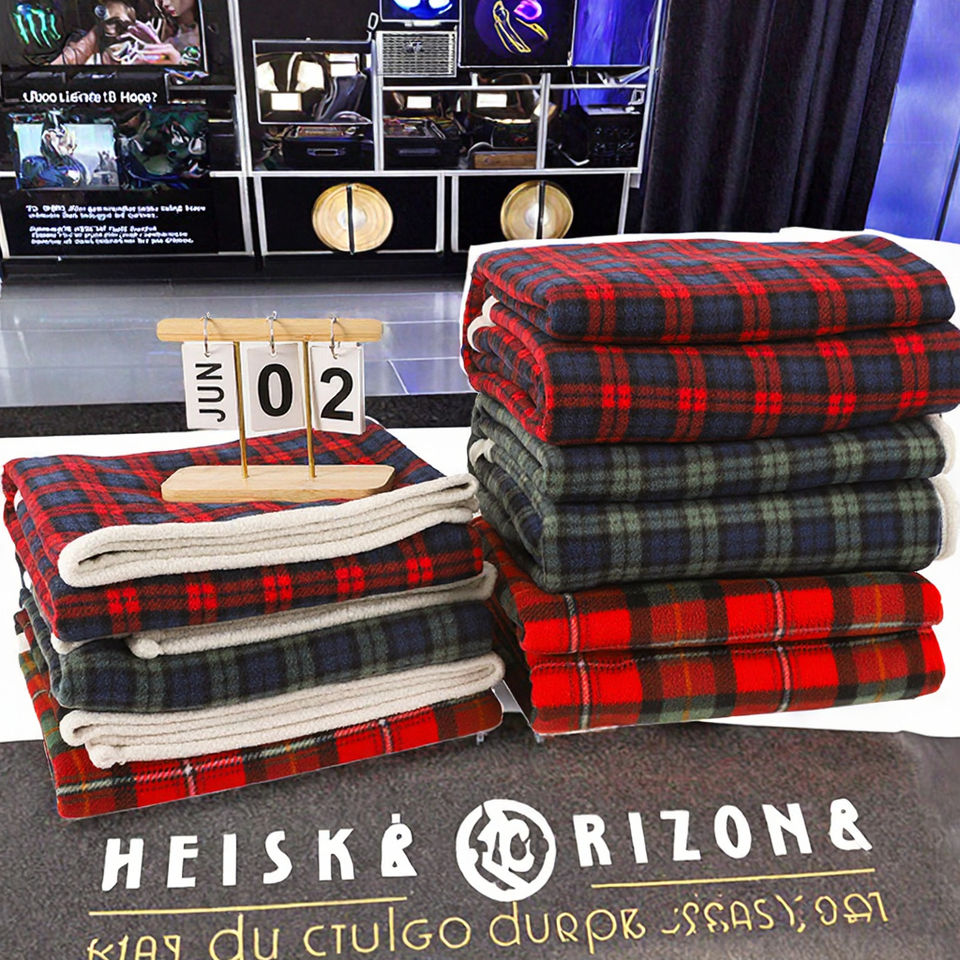 ผ้าห่มสำเร็จรูปลายสก็อต โพลีเอสเตอร์ 100% น้ำหนักเบา สำหรับงีบในออฟฟิศ ป้องกันไฟฟ้าสถิต ใช้ได้ทุกฤดู ใช้สำหรับเดินทาง ซักเครื่องได้