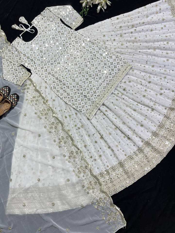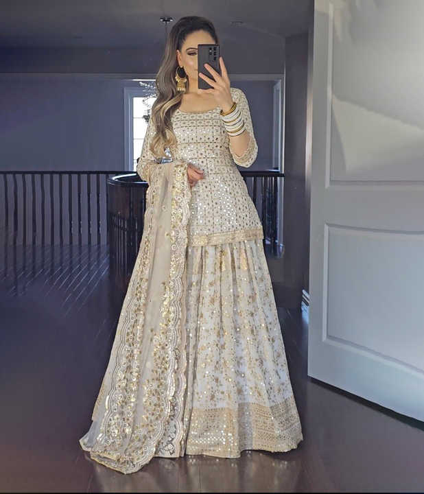 ชุด kurti & dupatta แบบดั้งเดิมชาติพันธุ์อินเดียชุด Georgette ปักเลื่อมงานเย็บเต็มรูปแบบ