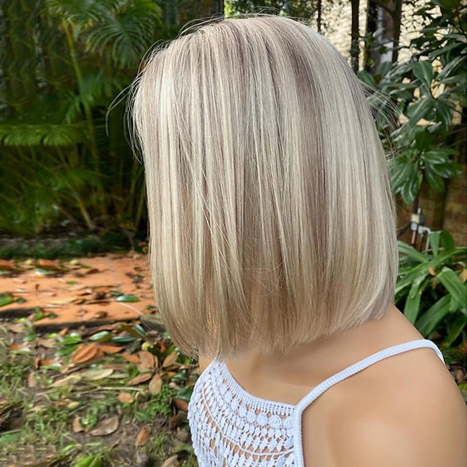 วิกผมสั้นบ๊อบบ๊อบวิกผมลูกไม้ฐานผ้าไหมไฮไลท์สีบลอนด์ขี้เถ้า