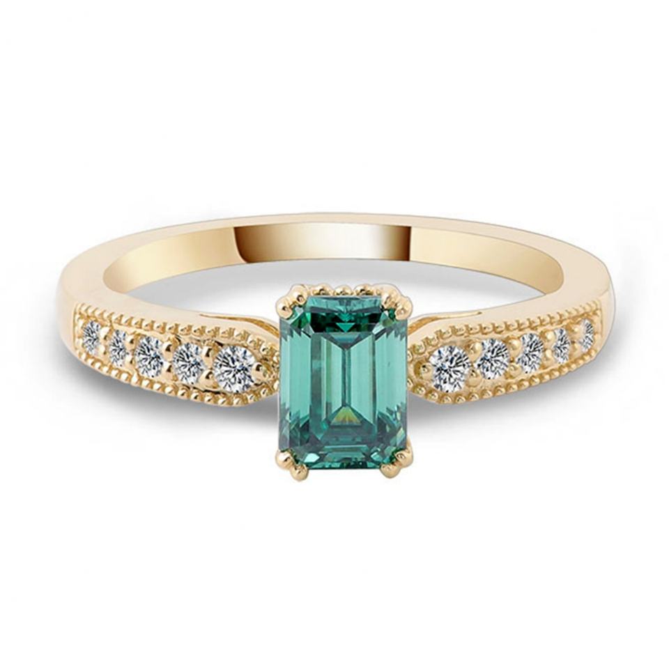 แหวนทองแท้ 18K/14K ประดับมรกต แหวนโมอิสซาไนต์สีฟ้าเขียว แฟชั่นขายดี แหวนสั่งทำสำหรับผู้หญิง แหวนหมั้น