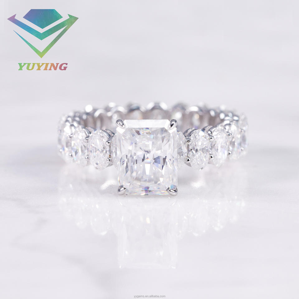 แหวนเพชรแท้ 18K ทองคำแท้ ประดับเพชรโมอิสซาไนต์ทรงเรเดียนท์ พร้อมใบรับรอง GR สำหรับผู้หญิง งานแต่งงาน/วันครบรอบ ดีไซน์เครื่องประดับชั้นดี