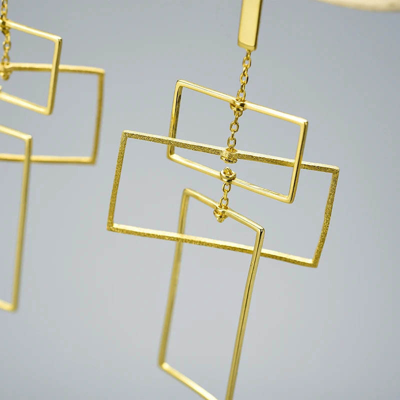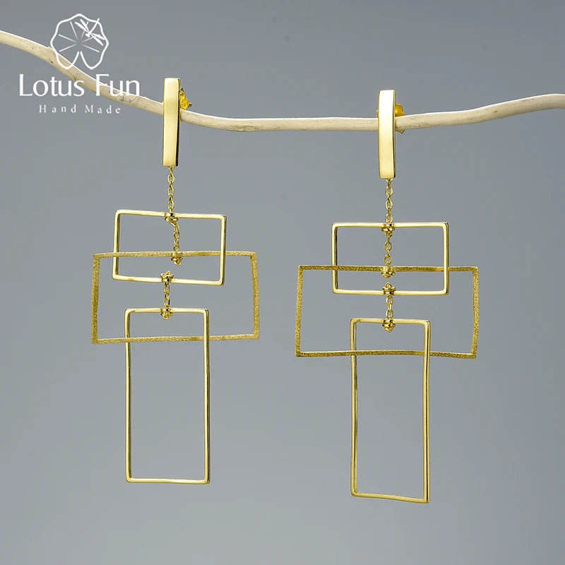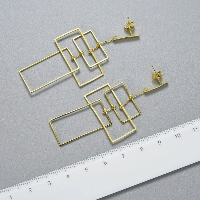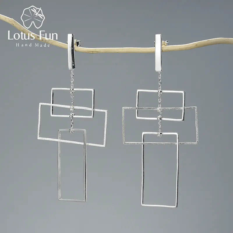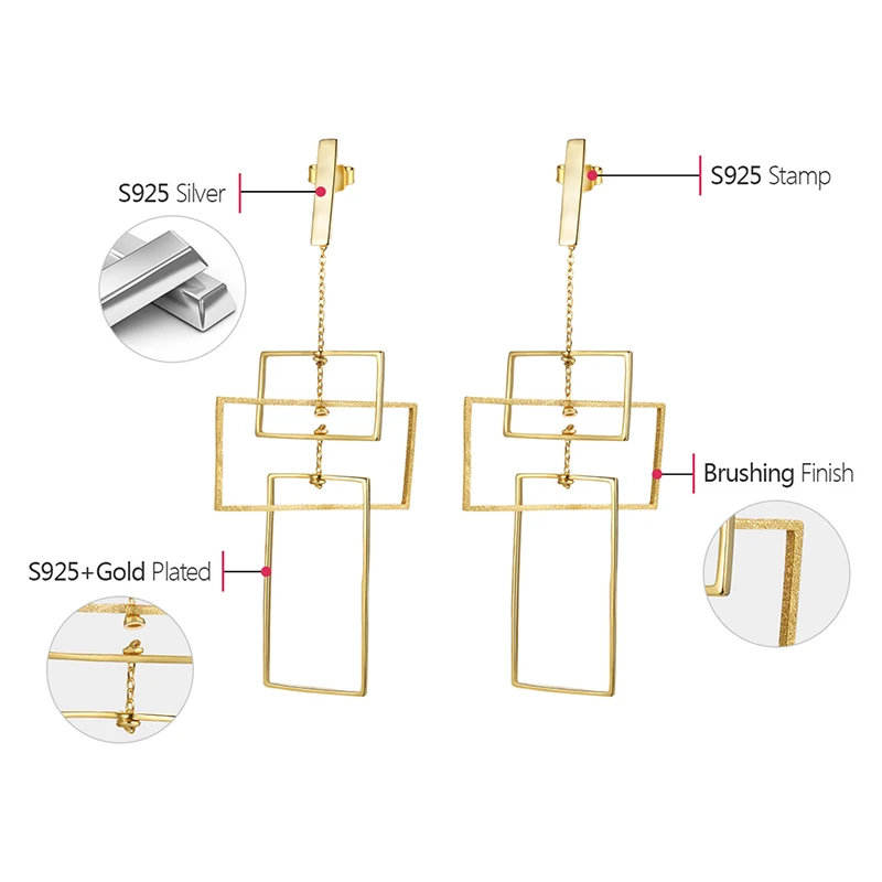Real 925 Sterling Silver Fine Rectangular Design Drop Earrings Fashion Dangle Style