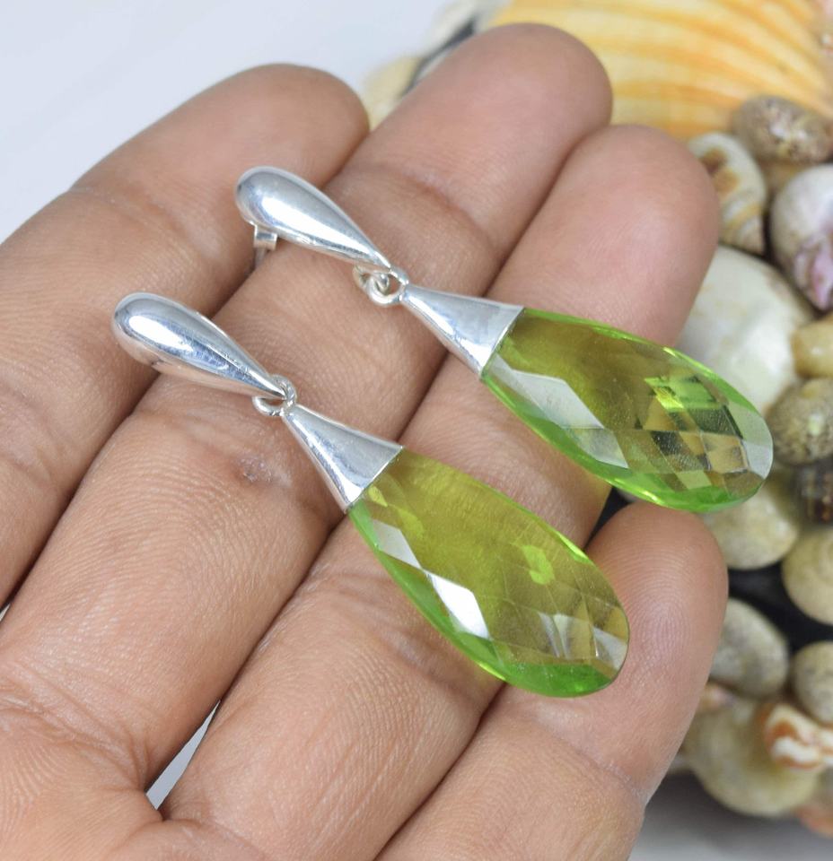 Real 925 Sterling Silver Green Peridot Quartz Gemstone Daily Wear Drop Dangle Green Earrings Light Weight Fine Jewelry Wholesale