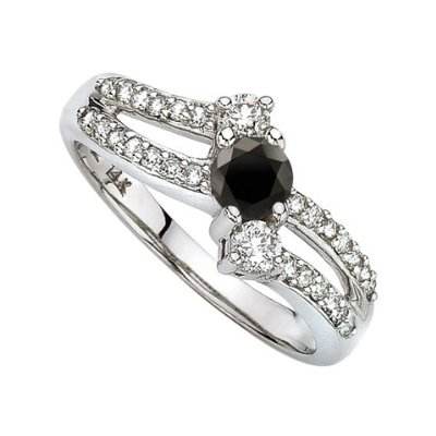 แหวนเพชรดำแท้เม็ดเดี่ยวประดับด้วยหินสีขาว | ทองคำขาว 10K ดีไซน์แยกส่วน สง่างาม ของขวัญเครื่องประดับชั้นดีสำหรับผู้หญิง
