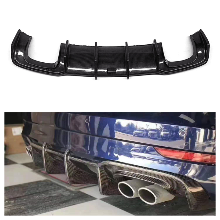 อะไหล่รถยนต์คาร์บอนไฟเบอร์แท้ รุ่น KB สไตล์ดิฟฟิวเซอร์หลัง ไม่มีไฟ LED สำหรับ Audi A3 S3 Sline ปี 2017 2018 2019