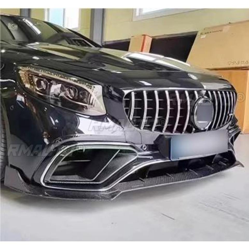 กันชนหน้าสำหรับรถยนต์ชุดตัวกระจายแสงภายนอกคาร์บอนไฟเบอร์ S63 W217สำหรับ Mercedes Benz S S-Class Coupe