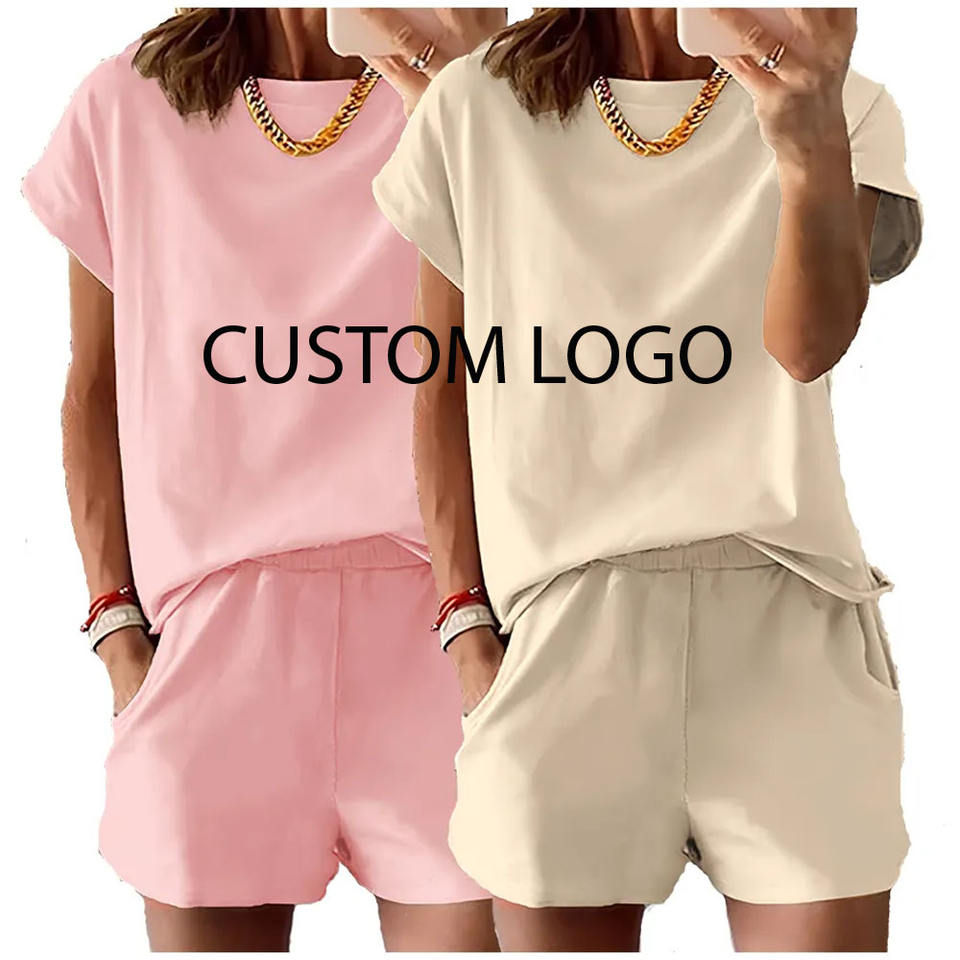 ชุดเสื้อผ้าแฟชั่นลำลองที่แท้จริงชุดฤดูร้อนสำหรับผู้หญิงชุดเสื้อผ้าใส่อยู่บ้านสำหรับผู้หญิงชุดเสื้อผ้าใส่สบายแขนสั้นผ้าโพลีเอสเตอร์ออกแบบได้ตามต้องการ