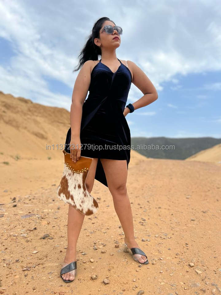 ถุงน่องหนังวัวแท้ประดับต้นคริสต์มาสประดับด้วยหนังวัวแท้ประดับด้วยหมุดสีทองสไตล์โบฮีเมียนแบบชนบท