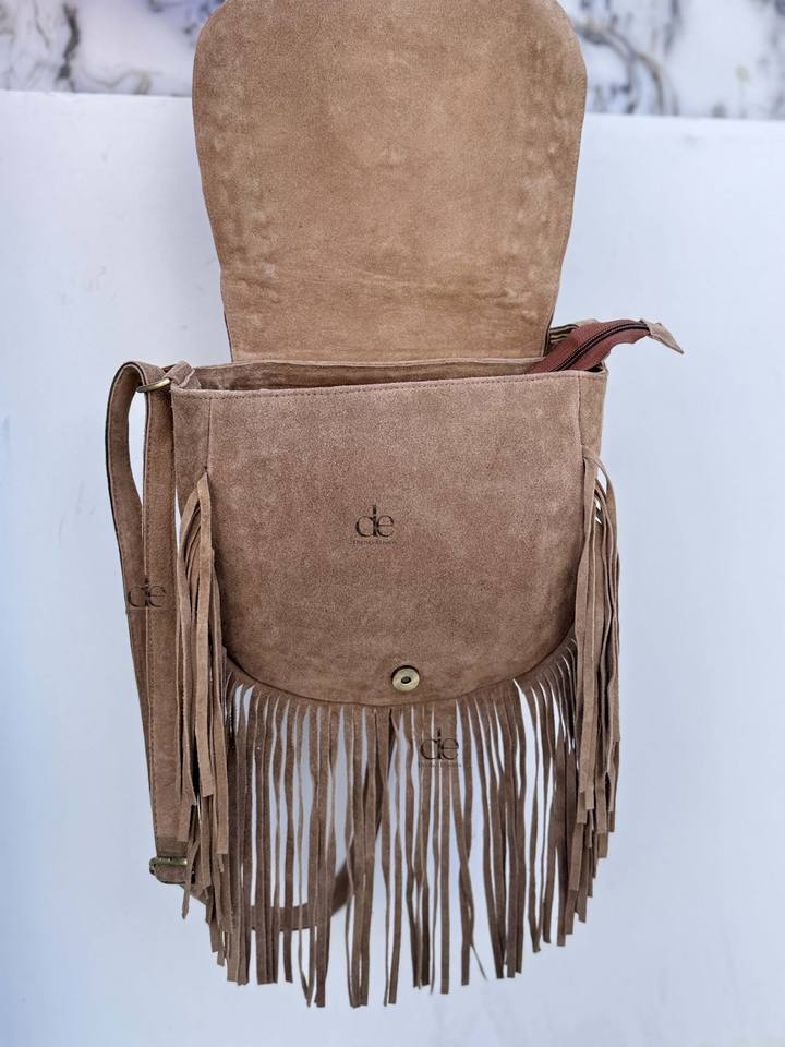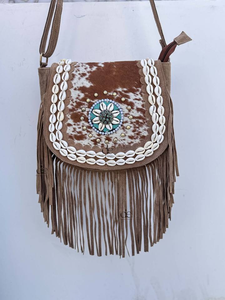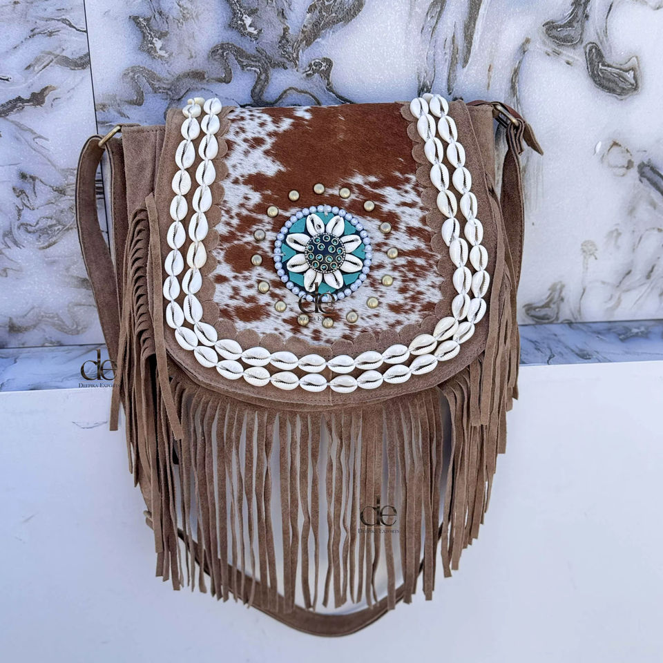 กระเป๋าหนังวัวแท้คุณภาพสูง แต่งพู่เก๋ไก๋ กระเป๋าสะพายหนังสไตล์โบฮีเมียน กระเป๋าสไตล์ยิปซี กระเป๋าวินเทจสุดเก๋