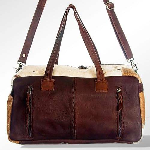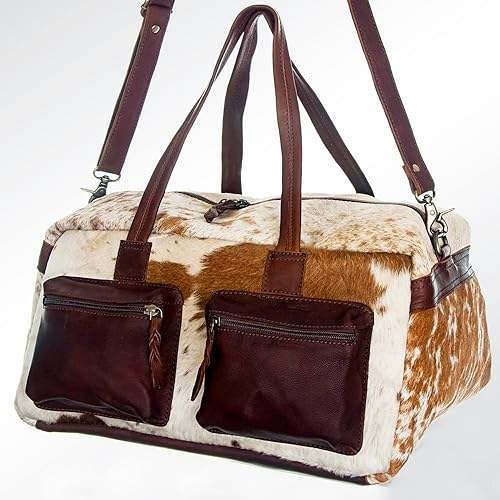 กระเป๋าเดินทางหนังวัวแท้ลายขนวัว รุ่นวินเทจ ขนาดใหญ่ ใส่ของได้เยอะ มีซิปปิด พกพาสะดวก LHDB-0013