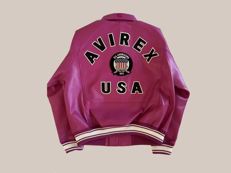แจ็คเก็ตบอมเบอร์หนังแท้ Avirex สำหรับผู้ชาย หนังวัวแท้คุณภาพสูง สีชมพู ขายดี ซิป สปริง ผลิตตามสั่ง ไซส์ใหญ่พิเศษ