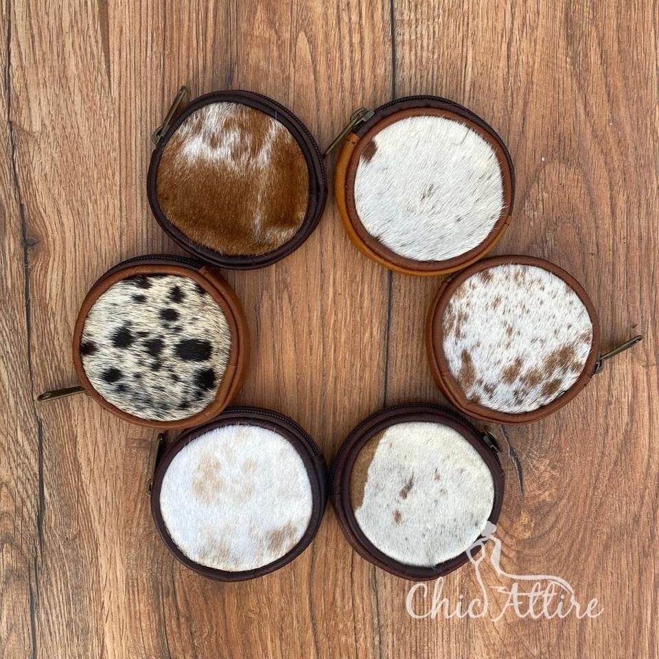 กระเป๋าใส่เหรียญหนังวัวแท้กระเป๋าสตางค์ทรงคลัทช์ทรงกลมหนังสไตล์ตะวันตกสำหรับทุกเพศ