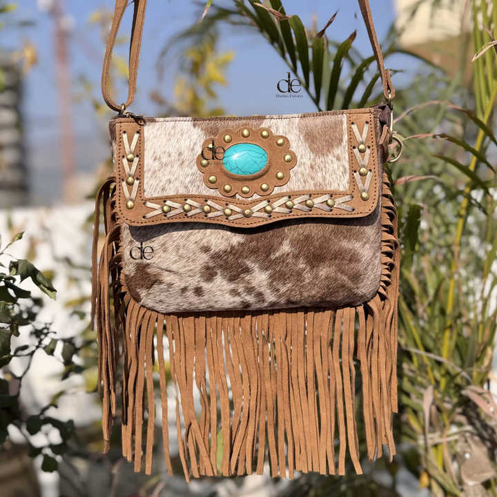 กระเป๋าถือหนังวัวแท้กระเป๋าสะพายข้างสีเทอร์ควอยส์หินกระเป๋าหลากหลายสไตล์โบฮีเมียนพู่ห้อยกระเป๋าขายดี