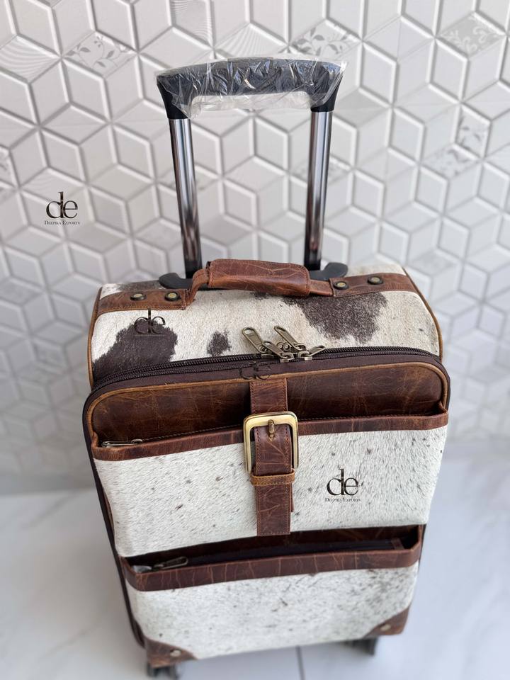 กระเป๋าเดินทางหนังวัวแท้ ทำมือ ใช้ได้หลากหลาย กระเป๋าล้อลาก ขนาดใหญ่ ใช้ได้ทั้งชายและหญิง กระเป๋าเดินทางขนสัตว์ทำมือ