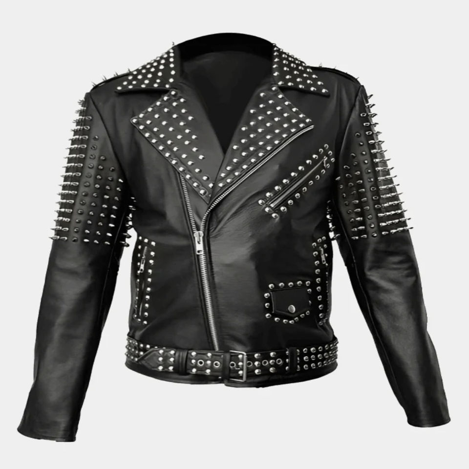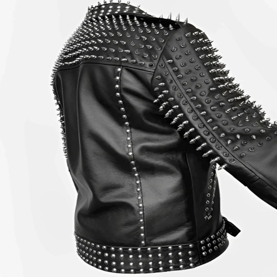 เสื้อแจ็กเก็ตนักขี่จักรยานหนังวัวแท้สีดำมีซิปปิดและกระเป๋า