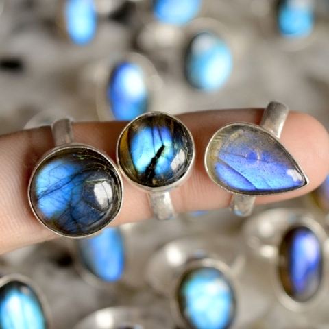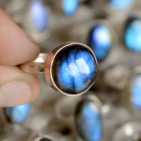 Real Diamond Overlay Silver Ring with Blue Labradorite Wholesale Loose Gemstone Pendant for Wedding or Gift