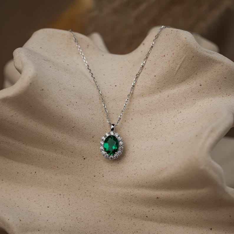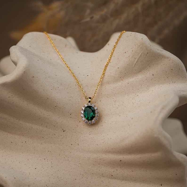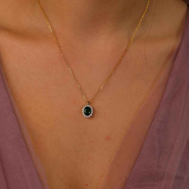 สร้อยคอมรกตแท้925เงินสเตอร์ลิง14K ชุบทองเครื่องประดับอัญมณีมรกตสำหรับเป็นของขวัญวันครบรอบวันเกิดสำหรับเธอ