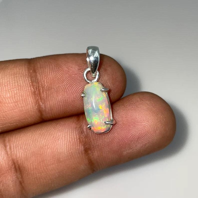 จี้ห้อยคอผู้หญิงทำมือประดับพลอยโอปอลธรรมชาติแท้จากเอธิโอเปีย ชุบเงินโบราณ ประดับคริสตัลหลากสี