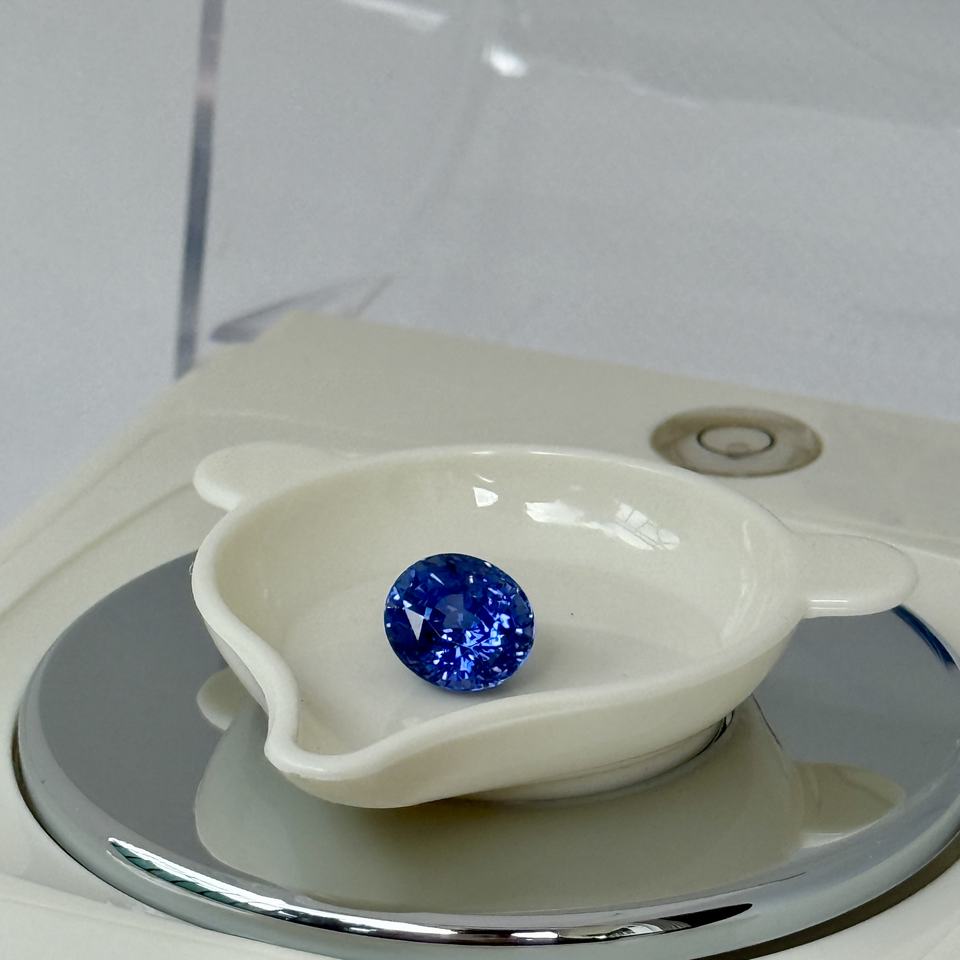 พลอย nalin พลอยแซฟไฟร์ธรรมชาติรูปไข่ตัดเป็นรูปไข่คุณภาพระดับพรีเมียม4.61ct สีฟ้าจากแลนกา