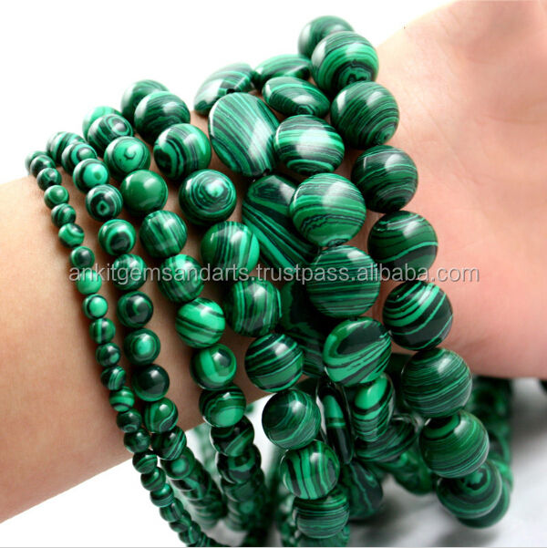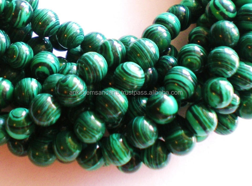 Real Genuine Natural Green Malachite Round Fine Quality Beads