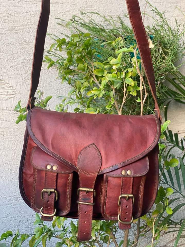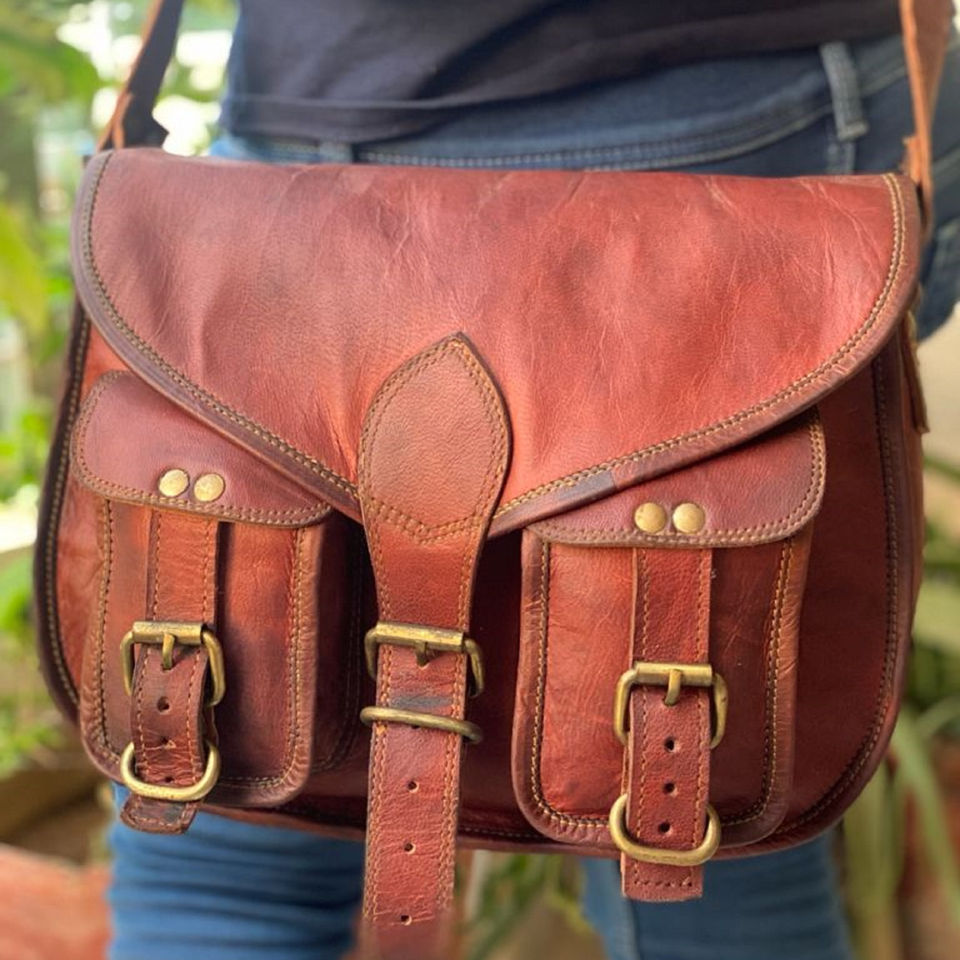 Real Goat Leather Handmade Vintage Handbag 10*13 Inch Shoulder Sling Bag