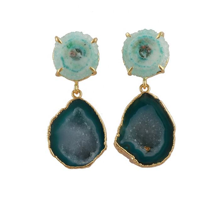 ต่างหูหินควอตซ์สีเขียวธรรมชาติ ประดับด้วยดรอยซ์ งานแฮนด์เมด ชุบทอง แบบคลาสสิก สำหรับงานแต่งงาน