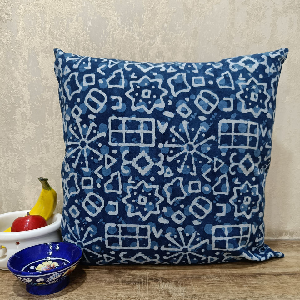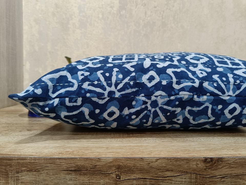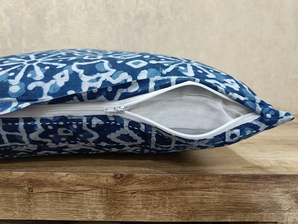 ปลอกหมอนอิงและปลอกหมอนผ้าฝ้ายวอยล์อินดิโก้พิมพ์ลายด้วยมือ 100% ขนาด 45x45 ซม. พร้อมซิปด้านหลัง สำหรับใช้ในบ้าน - KANTHA