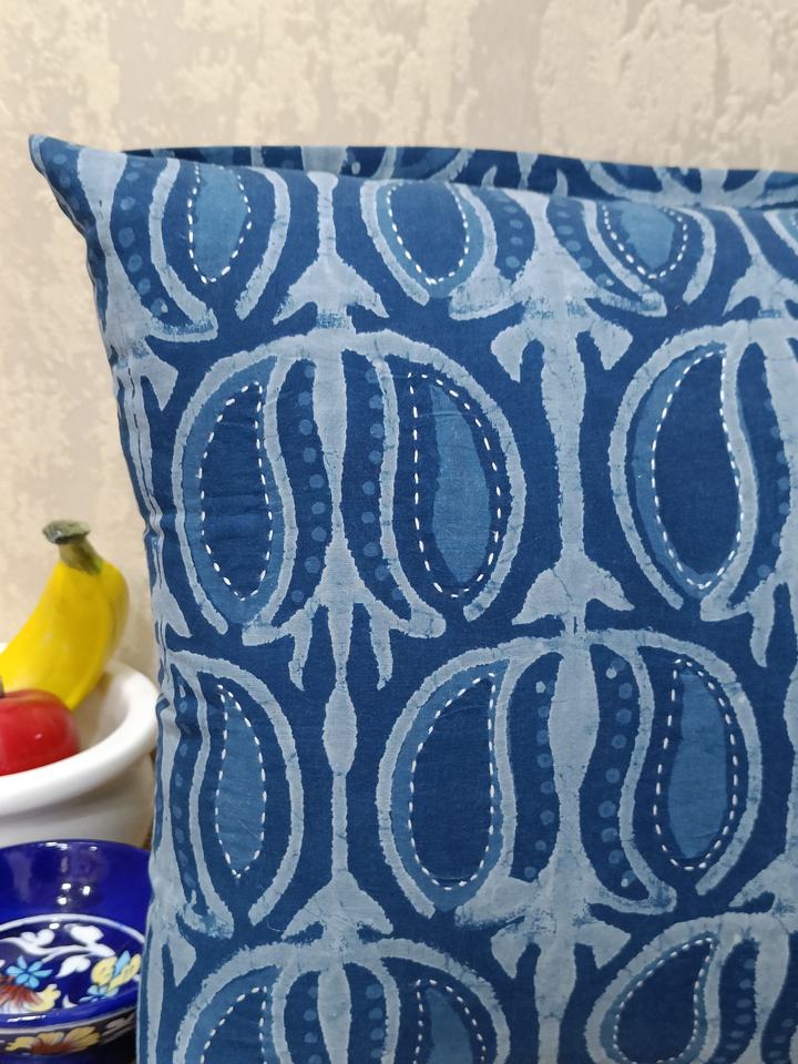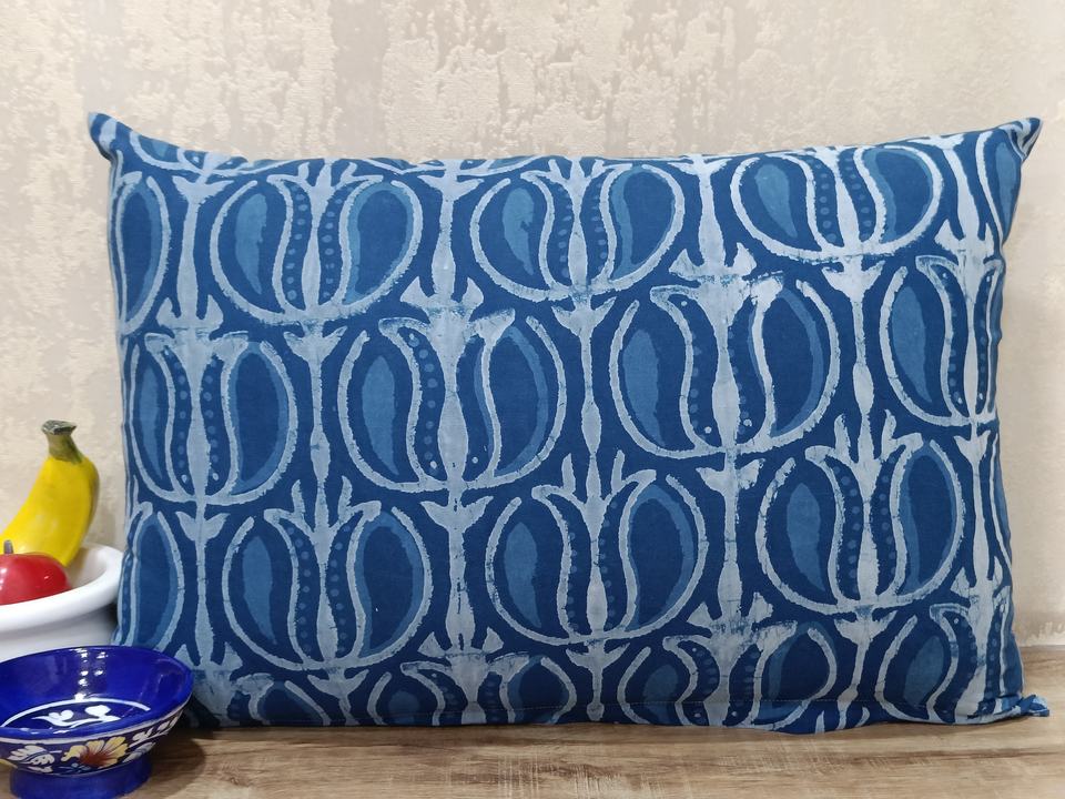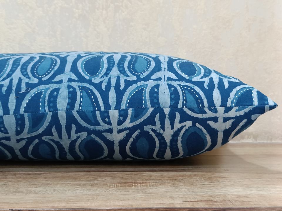 ปลอกหมอนอิงผ้าฝ้ายวอยล์ 100% พิมพ์ลายอินดิโก้แบบคันธา ทำมือ ขนาด 35x55 ซม. รูปทรงสี่เหลี่ยมผืนผ้า พิมพ์ลายทั้งด้านหน้าและด้านหลัง มีซิปด้านหลัง เหมาะสำหรับตกแต่งบ้าน