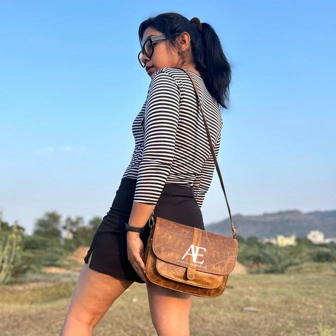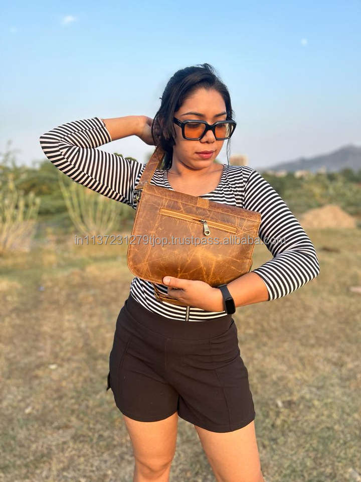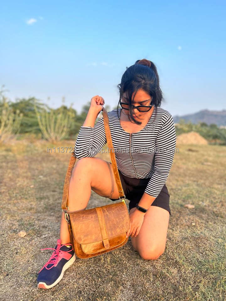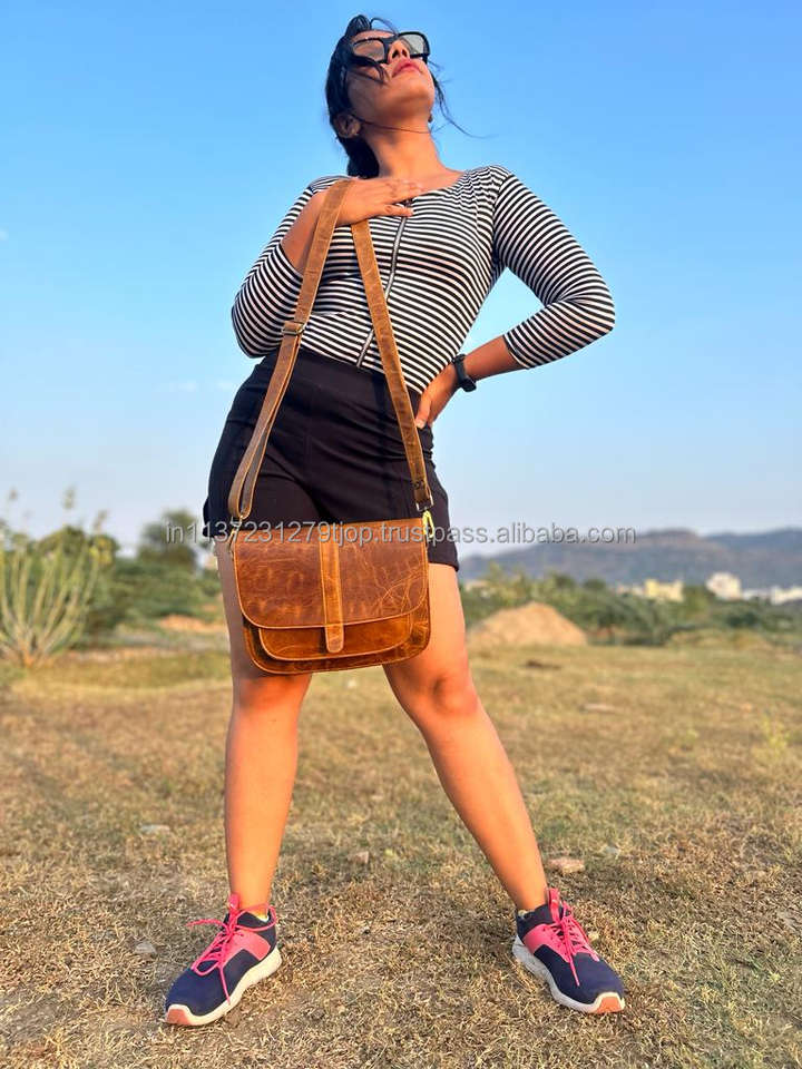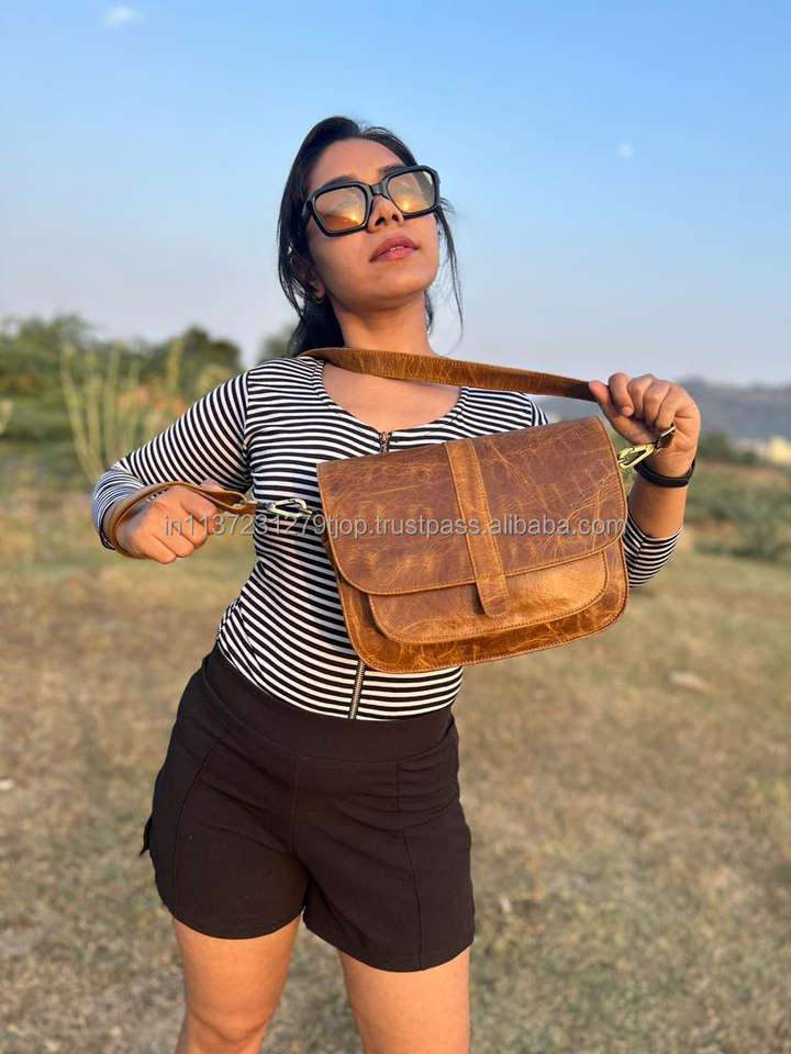 Real Handmade Full Grain Genuine Crunch Leather Handbag Stylish Women Real Vintage Leather Office Use Cross Body Shoulder Bag