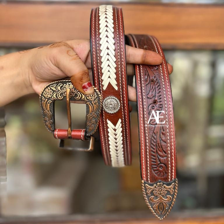 เข็มขัดคาดเอวหนังแท้สำหรับทุกเพศ, เข็มขัดลายดอกไม้ทำมือสไตล์ตะวันตก