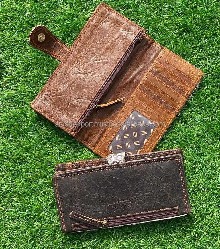 ของขวัญทําด้วยมือจริงวัตถุประสงค์คุณภาพสูงแกะสลักวัวหนังแท้ Bi-พับกระเป๋าสตางค์ผู้หญิงทําด้วยมืออินเทรนด์คลัทช์