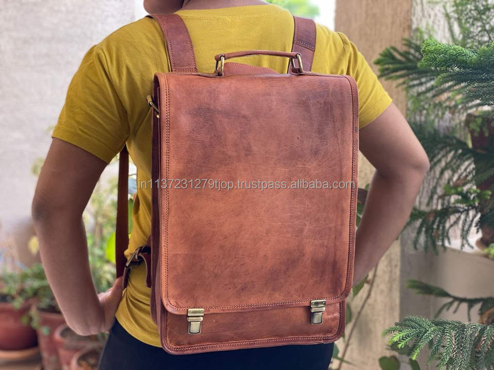 กระเป๋าเป้หนังแพะแฮนด์เมดแท้ใช้ได้สองอย่างในหนึ่งเดียวกระเป๋าเป้นักเรียนหนังแนววินเทจสำหรับทุกเพศ
