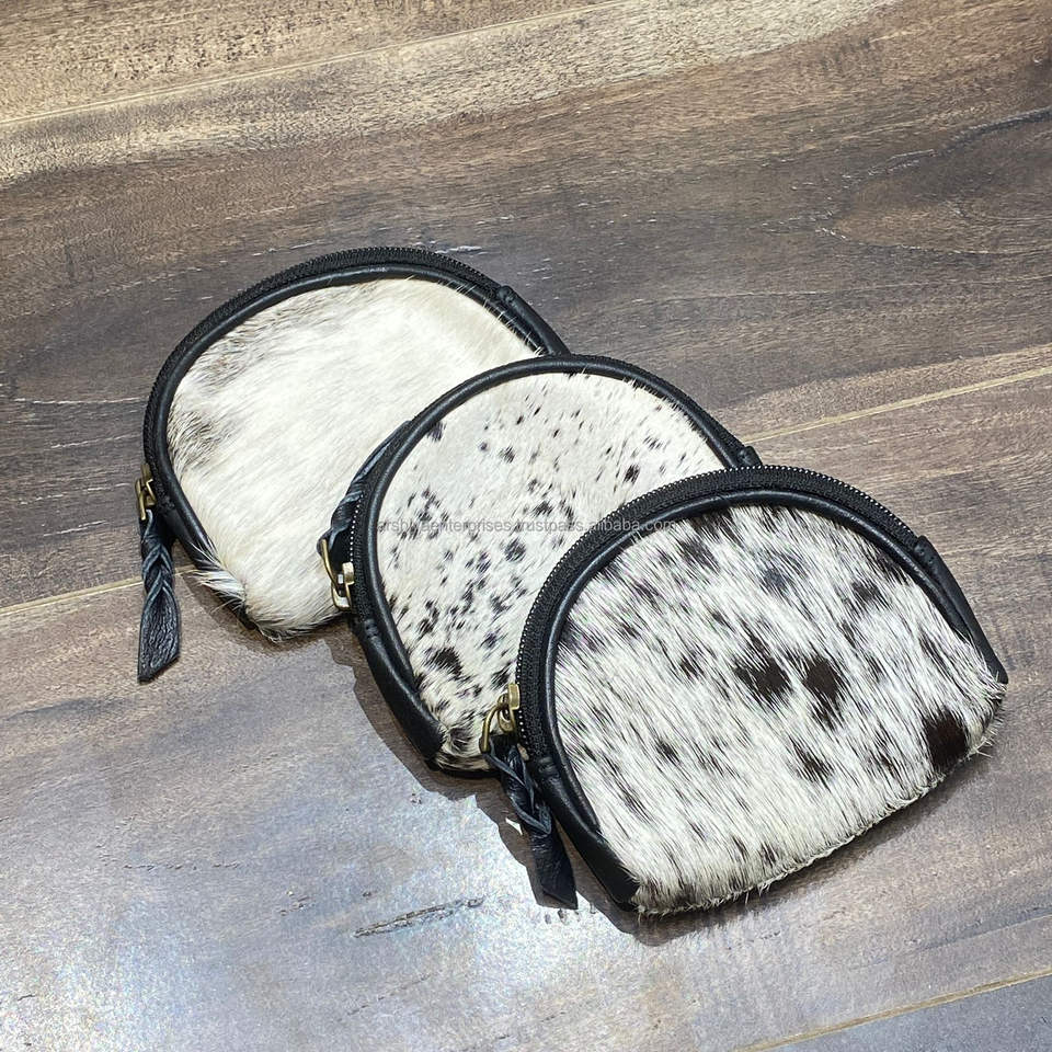 กระเป๋าใส่บัตรเครดิตทรงรีขนาดเล็กรูปวงรีทำด้วยมือทำจากหนังขนสัตว์แท้