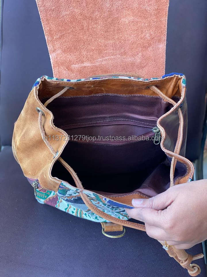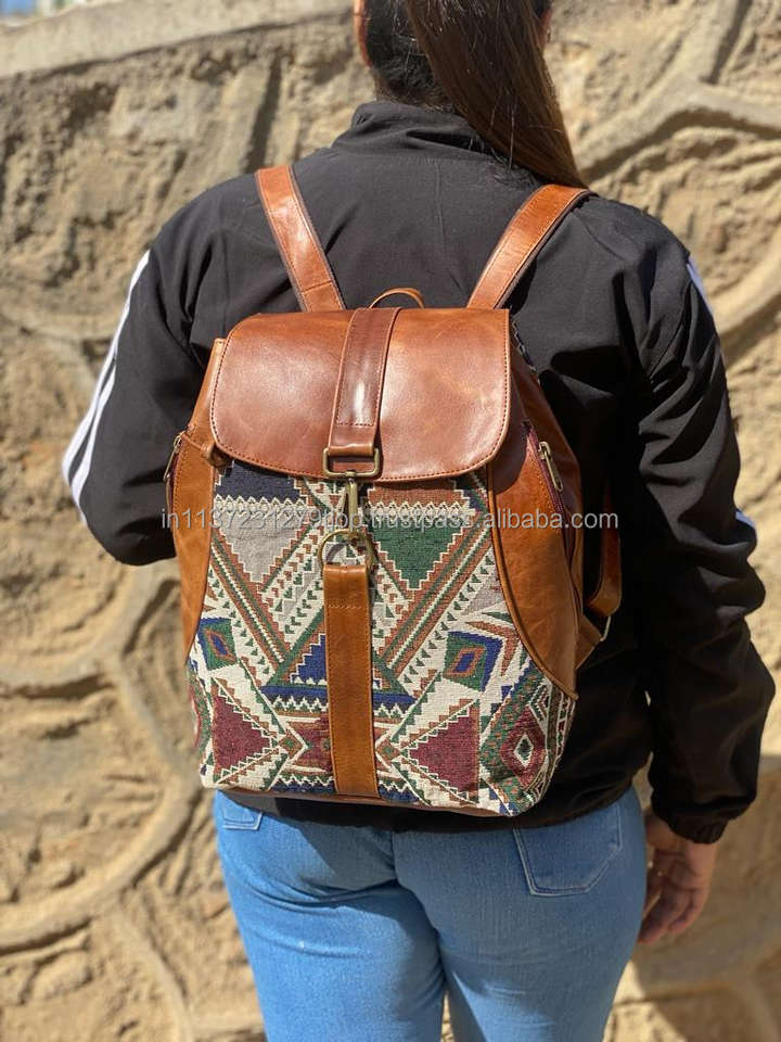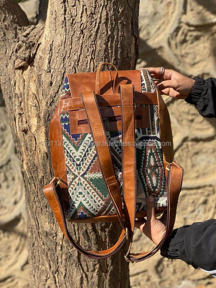 เป้หนังทำด้วยมือแท้ jacquard kilim วินเทจสไตล์ตะวันตกกระเป๋าเป้หนังกระเป๋าสะพายหลังใช้ได้ทั้งชายและหญิงสไตล์โบฮีเมียนแบบเรียบง่ายมีเอกลักษณ์
