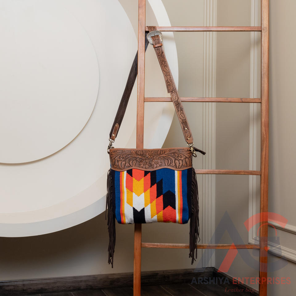 กระเป๋าถือหนังสไตล์โบฮีเมียนสำหรับผู้หญิงหนังแท้