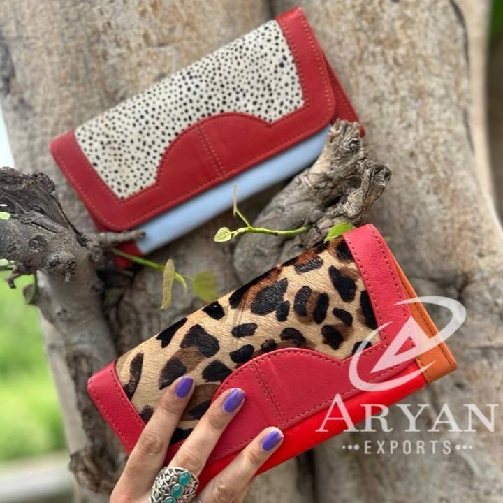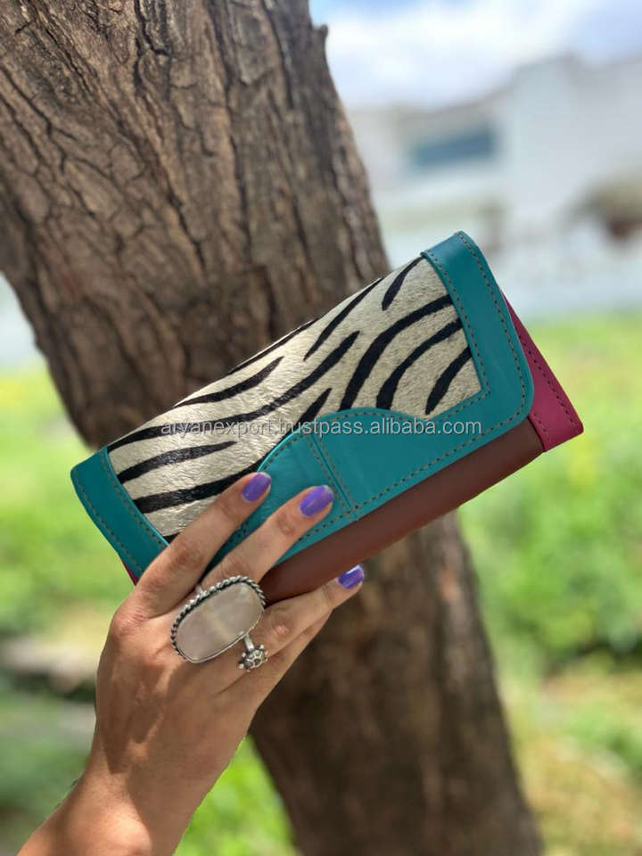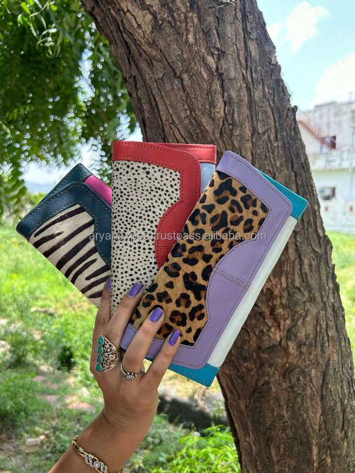 กระเป๋าสตางค์หนังสัตว์แท้สำหรับผู้หญิง,กระเป๋าเงินที่ใส่บัตรเอทีเอ็มสีรุ้งมีขนาดเล็กทันสมัยพิมพ์ลายสัตว์รีไซเคิล