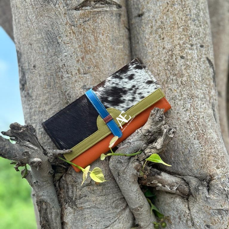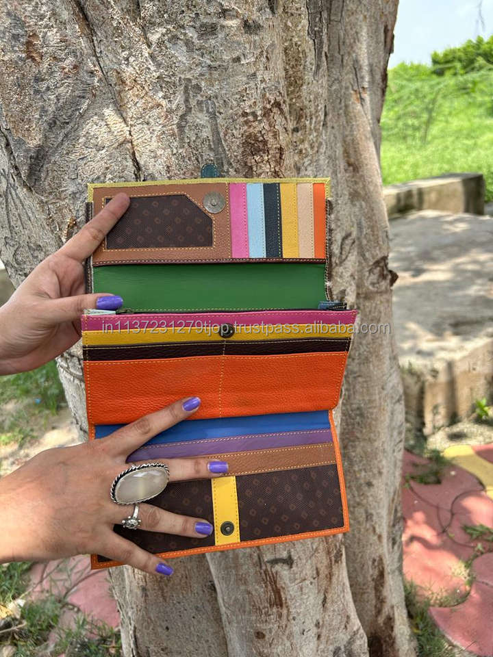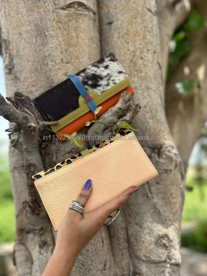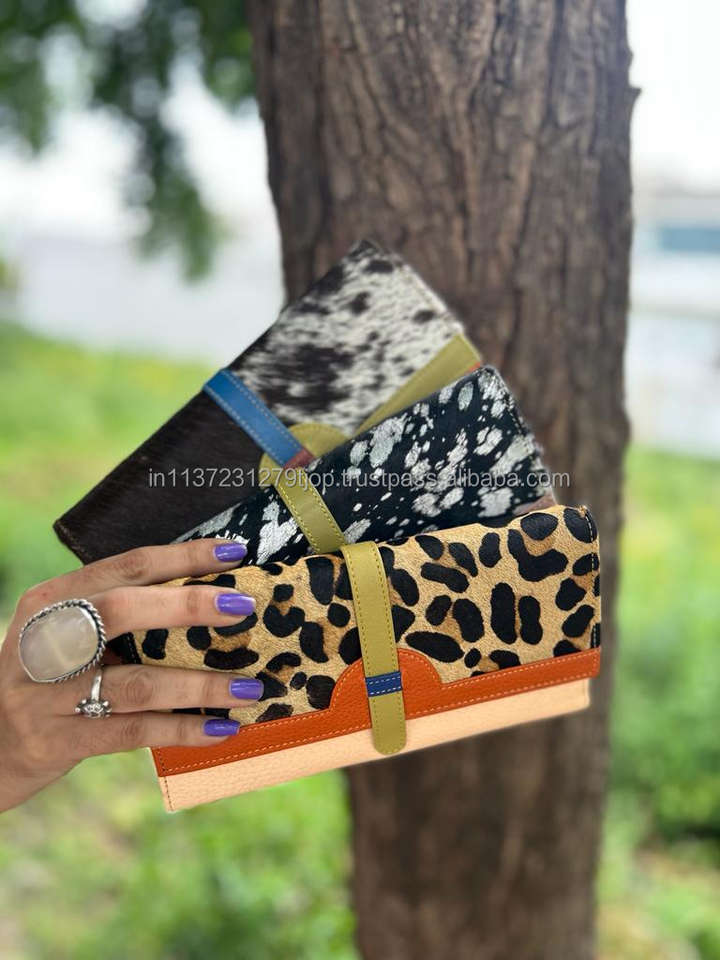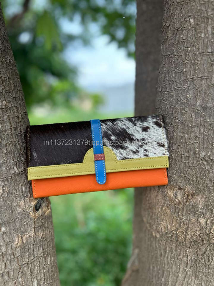 กระเป๋าคลัทช์หนังสำหรับผู้หญิงหนังขนสัตว์แท้รีไซเคิลหนังสัตว์มีสไตล์กระเป๋าสตางค์อเนกประสงค์สีรุ้งกระเป๋าใส่บัตร ATM