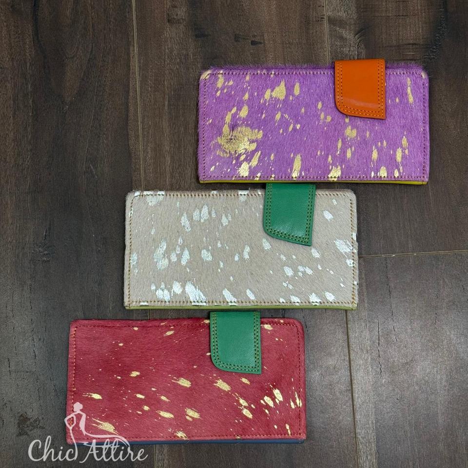 กระเป๋าคลัทช์หนังขนสัตว์เมทัลลิกสำหรับผู้หญิงกระเป๋าคลัทช์แบบสั้นหนังทำมือรีไซเคิลมีสไตล์กระเป๋าสตางค์แบบอเนกประสงค์สีทันสมัยสำหรับผู้หญิงที่ใส่บัตร ATM