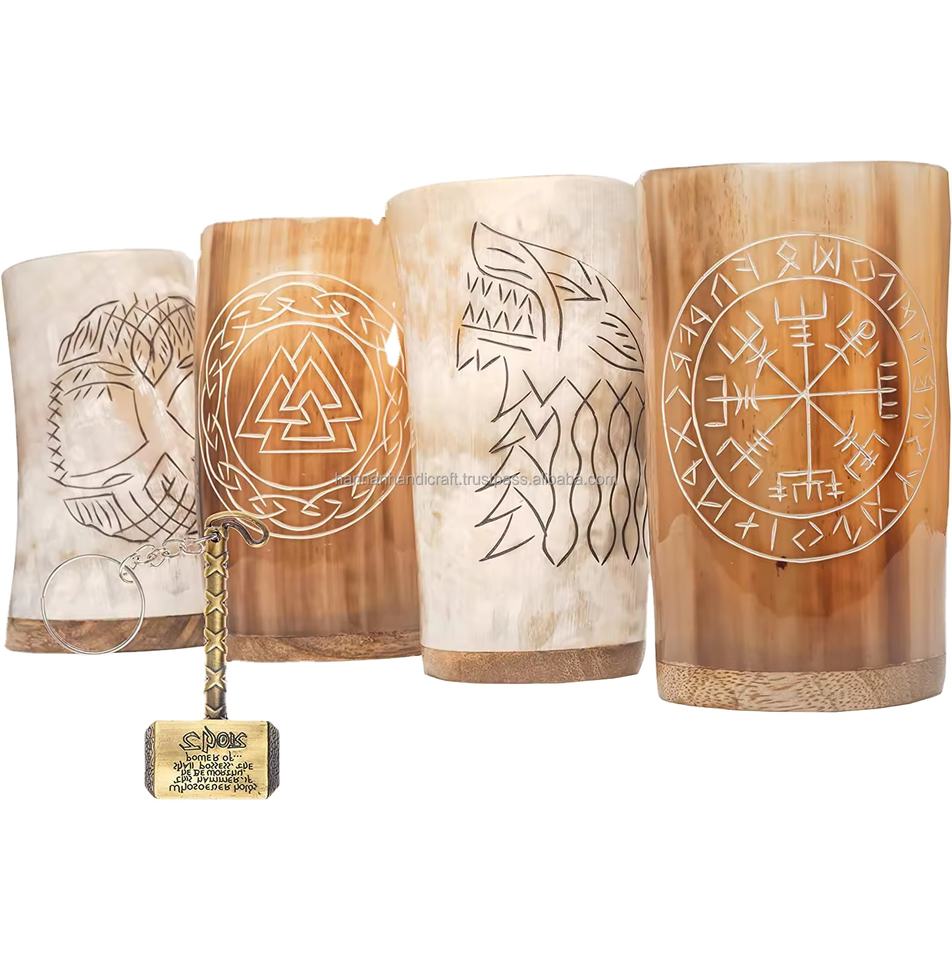 แก้ววิสกี้ทรงเขาสัตว์ แก้วน้ำทรงเขาสัตว์แบบสั้น สั่งทำโลโก้ได้ สำหรับงานปาร์ตี้ บาร์ วัสดุออร์แกนิค ทำด้วยมือ สไตล์โบราณ ลายเลียนแบบ