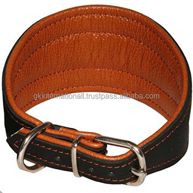 ปลอกคอสุนัขแบบเรียวกว้างพิเศษหนังแท้,เย็บแฟนซีและ Padding นุ่มพร้อมอุปกรณ์สุนัขสแตนเลสสตีล