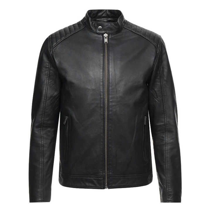 แจ็คเก็ตหนังแกะแท้แบบ Aniline สำหรับผู้ชาย พร้อมซับในสีดำแบบ Quilted และแจ็คเก็ตหนังสำหรับผู้ชายทั้งด้านในและด้านนอก